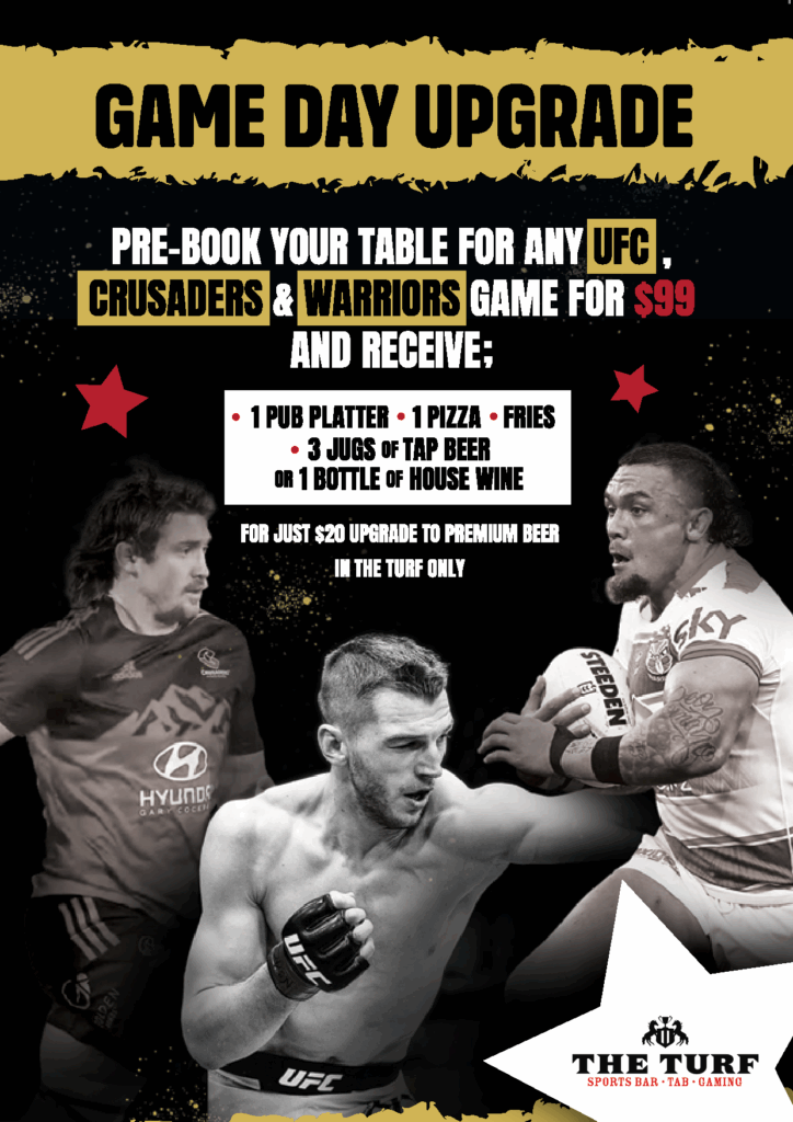 To book a table for any of the below events, phone the bar phone 03 383 0417 or email info@theturf.co.nz